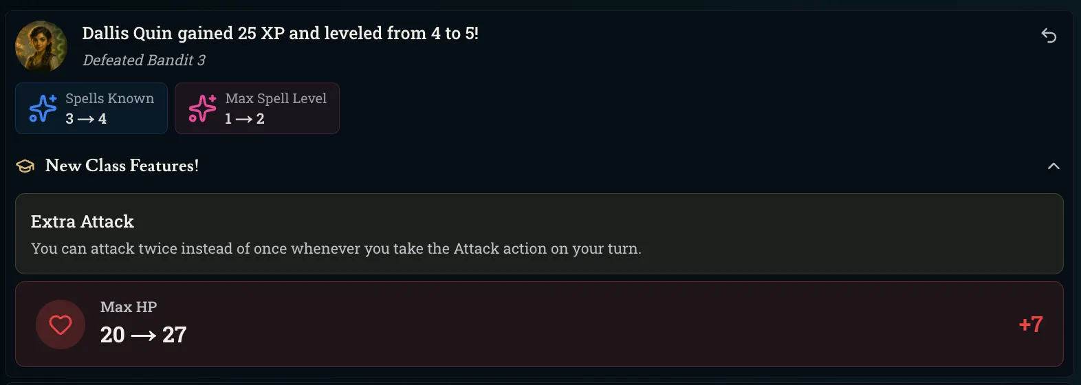 A new level up screen where you can choose ASIs / feats / and see the new class features you’ve unlocked.