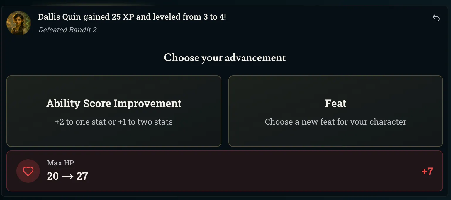 A new level up screen where you can choose ASIs / feats / and see the new class features you’ve unlocked.