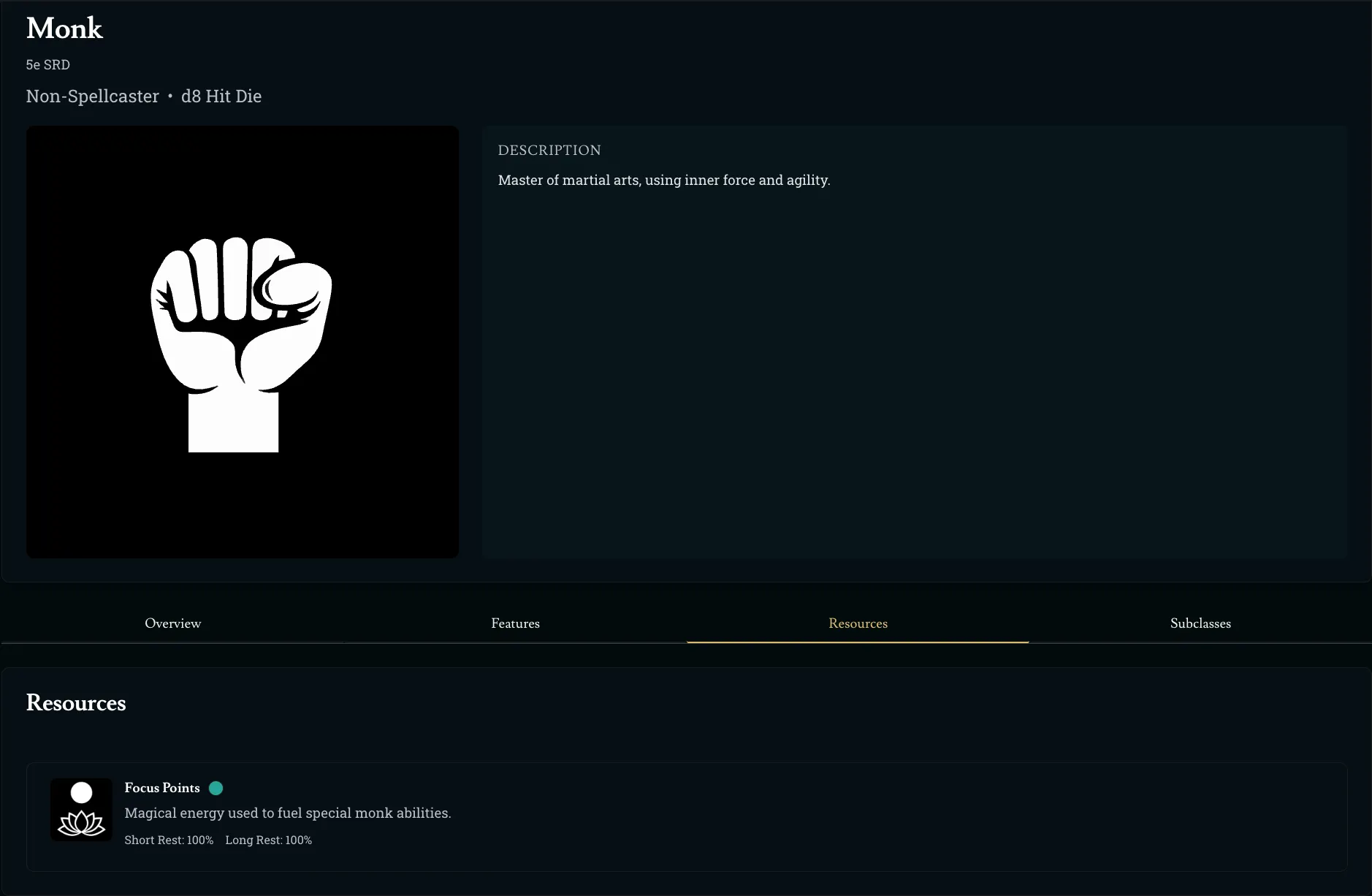 While we’re excited that the SRD class resources are in, we’re even more excited about the possibilities with homebrew. You’ll be able to create manageable class resources like mana, oxygen, chakra, etc. We can’t wait to see the creative things that you guys will come up with!