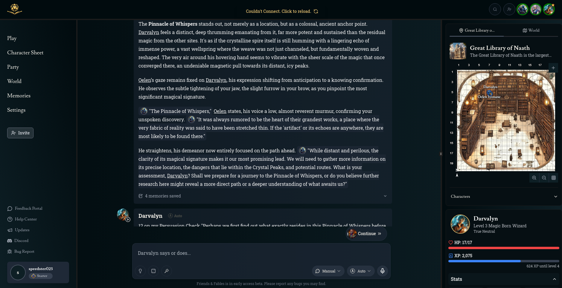 When i opened to play again today it says it cant Connect and im having to Reload the page everytime franz is typing up a new section i can still play but im having to reload each time franz responds