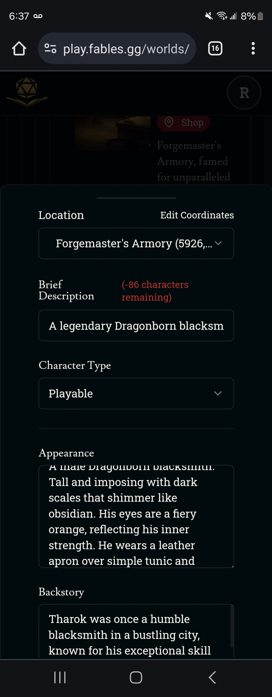 When making a character, or NPC the brief description goes past it's character limit, unlike before.
