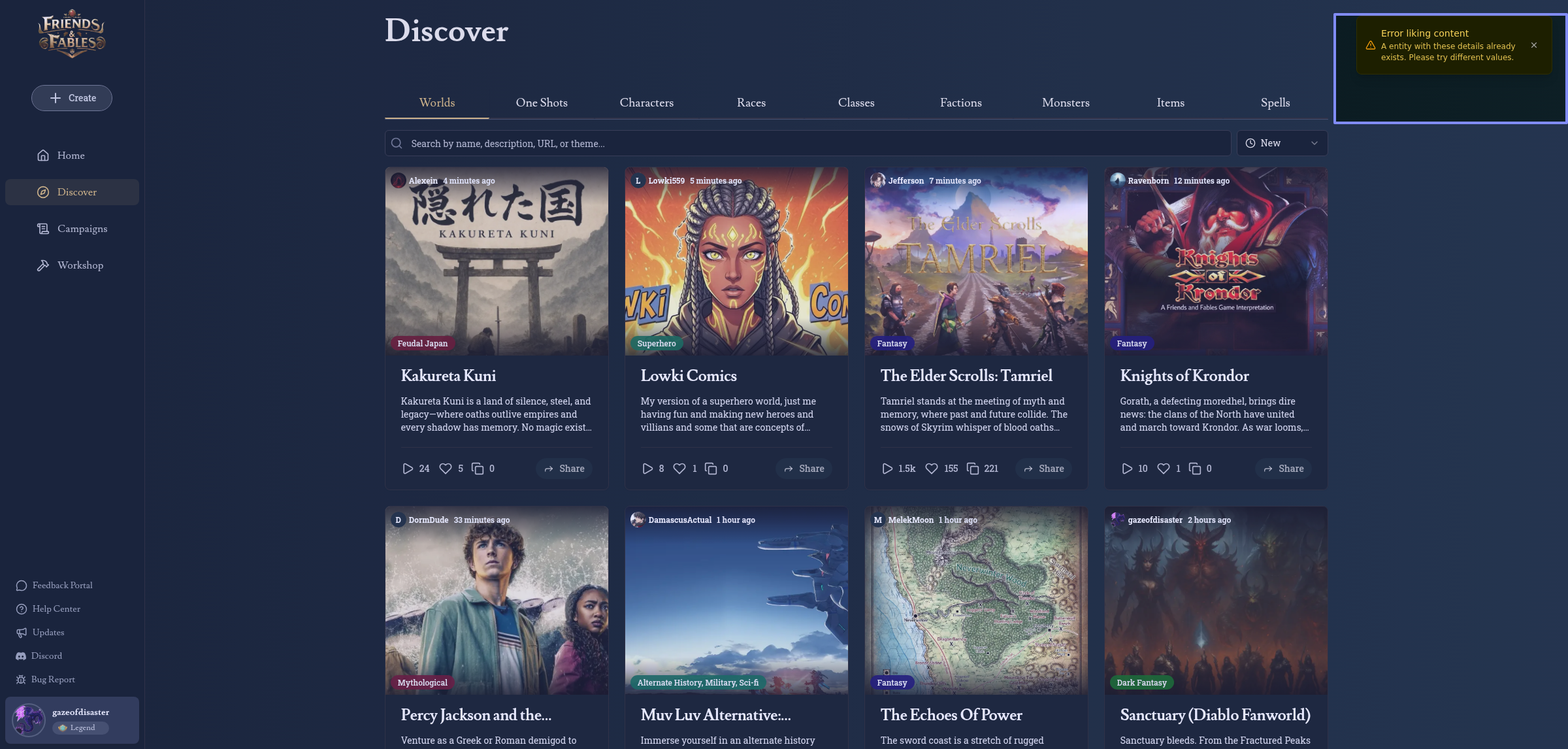 Unable to like any content. Results in bug.