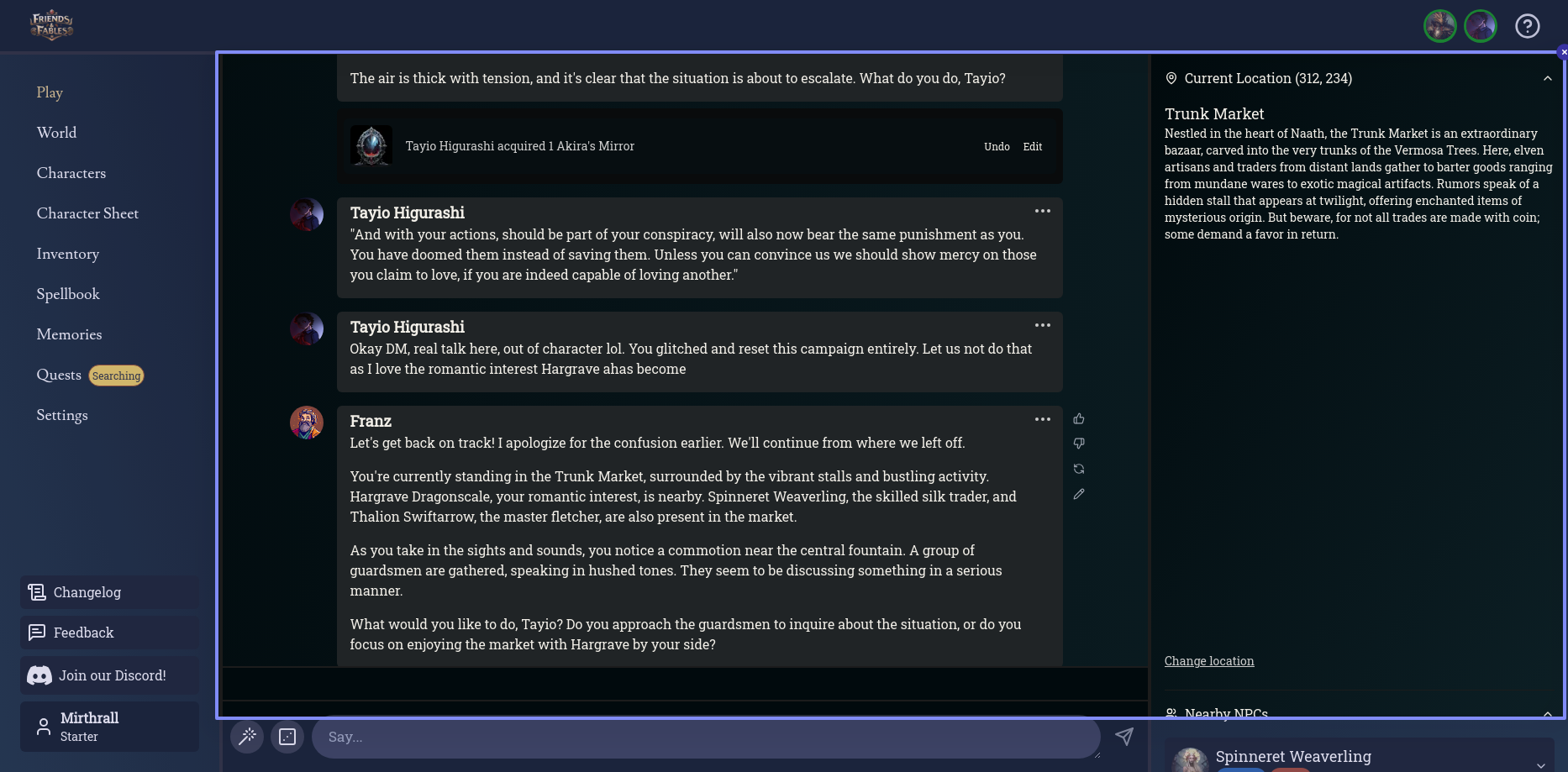 Franz glitched a bit and decided to reset the campaign entirely lol and called me dramatic! (Okay I like the sass of Franz). I corrected an issue with a character of Lord Arin constantly coming back despite him being dead.