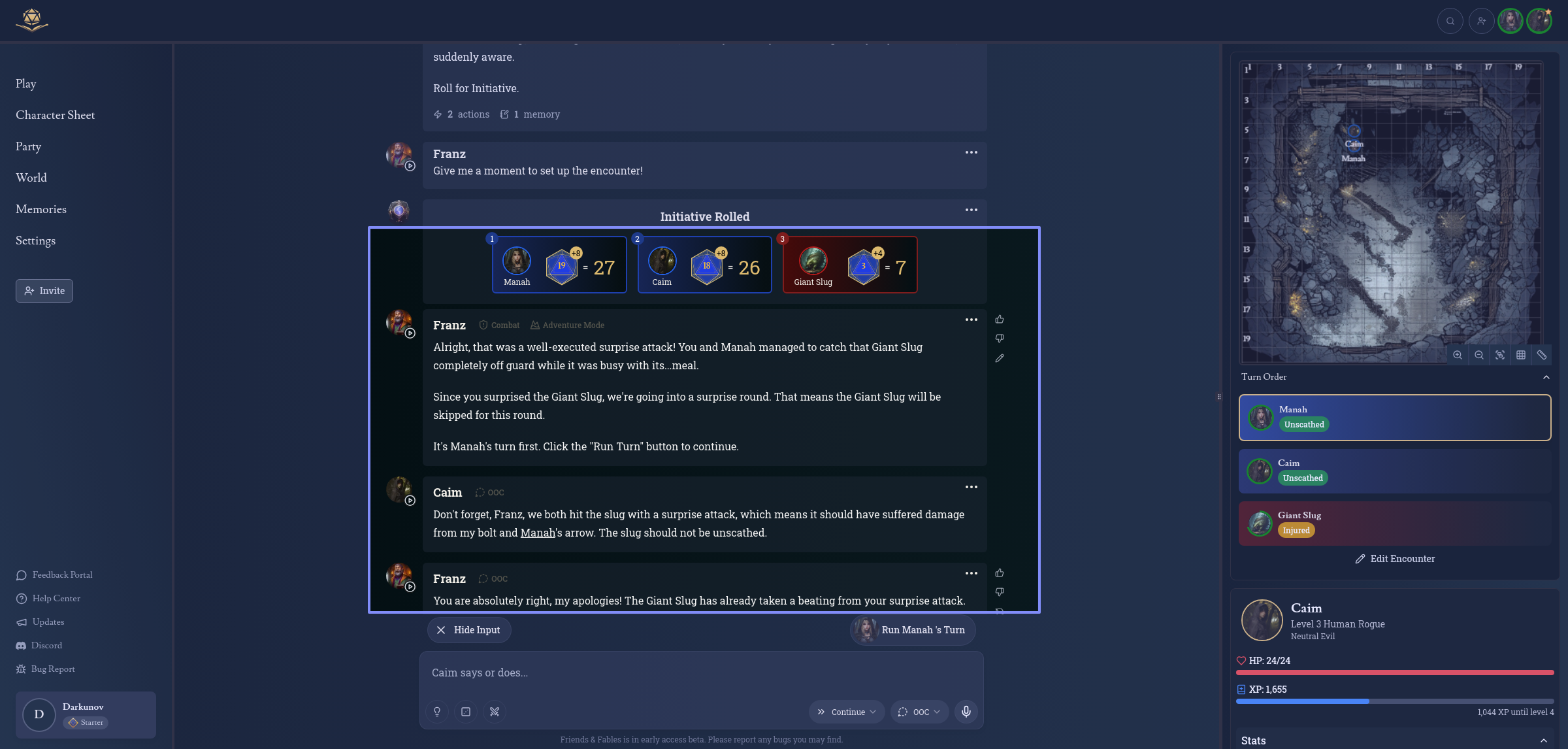 Roll for initiative when prompted.