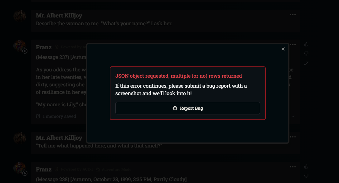 The NPC character Franz created for her was undone at some point and now I get this. I expected it to autogenerate a new NPC.