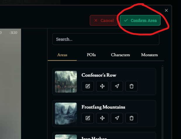 If you select an area via the modal (Select area on map → move icon → adjust size/position of area) it returns you to the home screen when selecting “confirm.” (and then have to click all the way back to where you were).