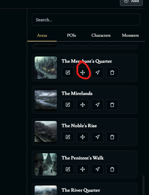 If you use the second option, and select the move icon from the list of areas…it also takes you to the home screen.