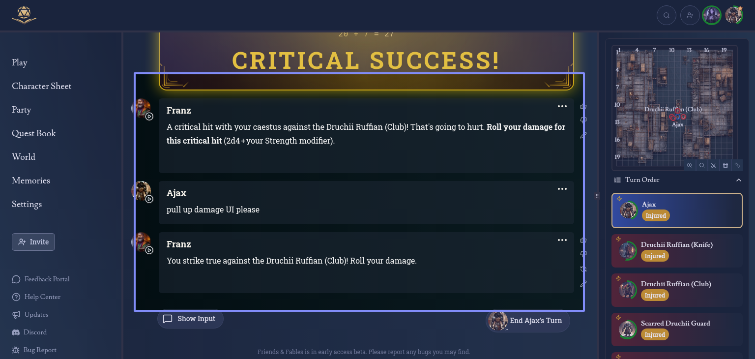Found in almost every combat, damage roll UIs are so often not shown, causing me to have to ask franz every time. In this encounter, its happened about 3 or 4 times already. Hereโs the event ID
