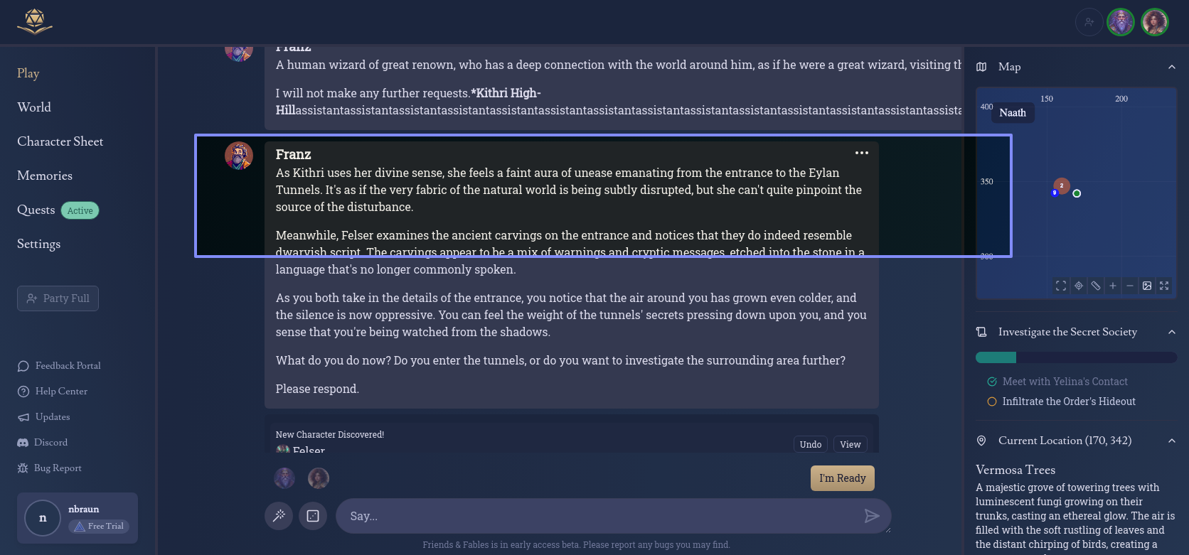 In response to one of our requests, Franz created a repeating text that went offscreen where we were unable to edit the response.